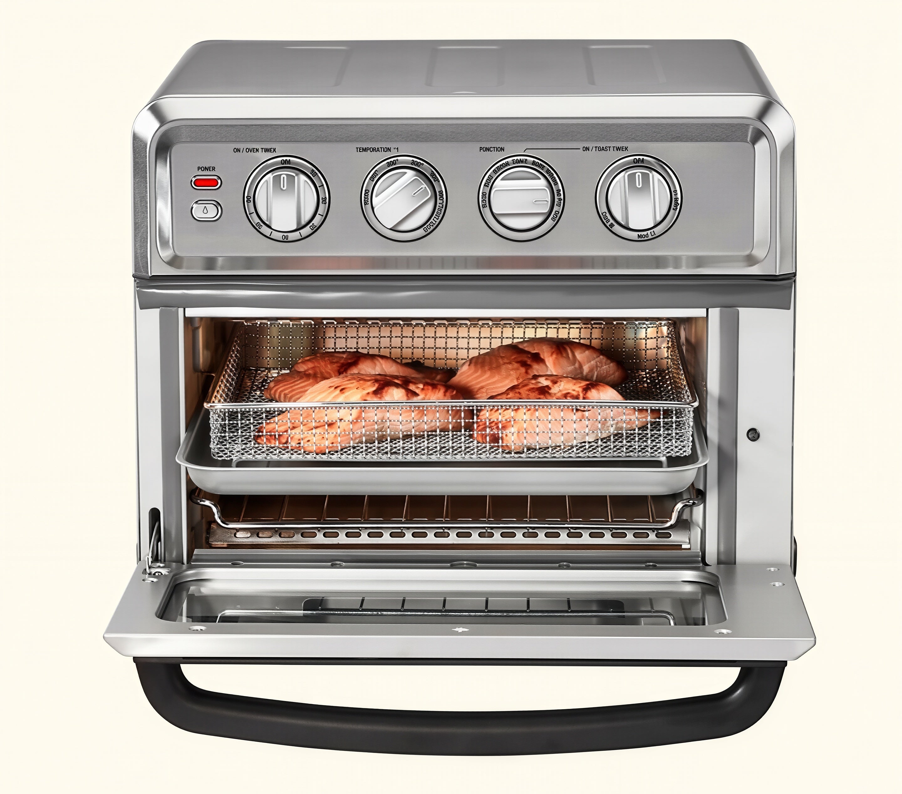- Versatile Cooking: 1800W air fryer toaster oven with 8 functions: air fry, toast, convection bake, bake, convection broil, broil, grill, warm.
