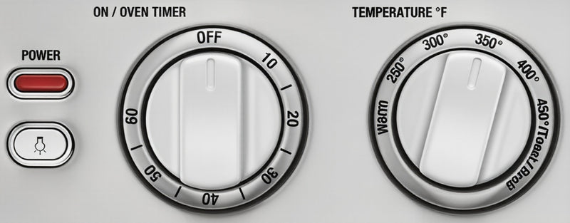 - Simple Controls: Dial for Warm–450°F, 60-min timer/auto-shutoff, toast shade selector.